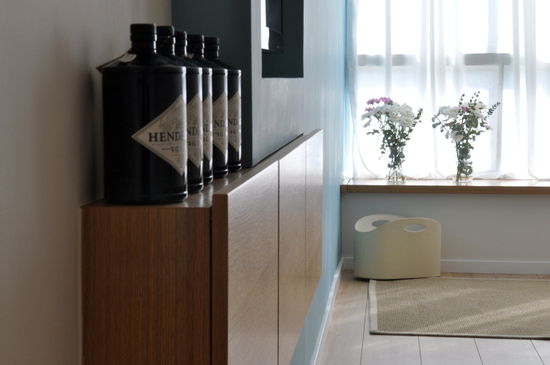 תוכננו מקומות אחסון נסתרים ונעשה שימוש בפלטת צבעים קרירה לצד חומרים חמים.